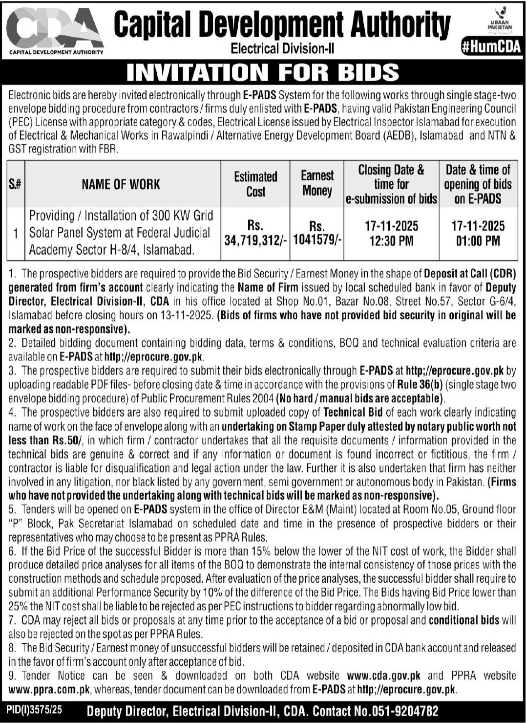 Mechanical, Machinery, General Order Supply, Energy, Electronics, Electrical, Development Authority