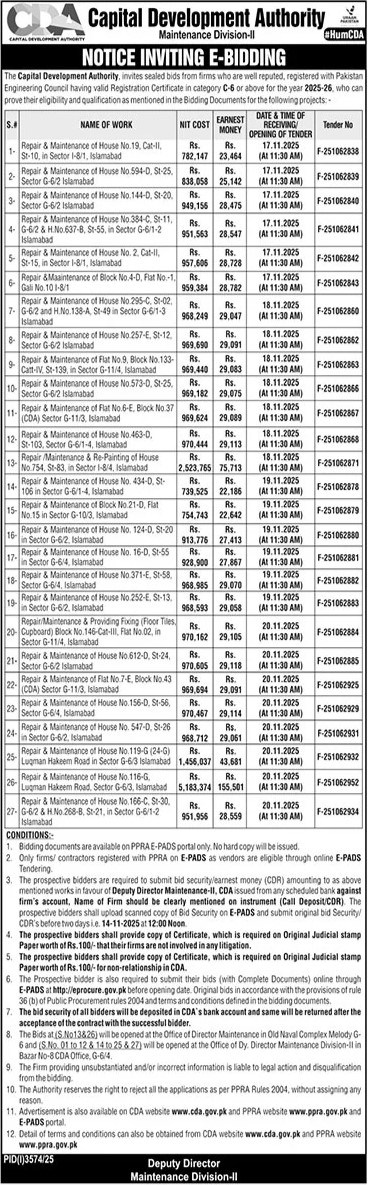 Water Supply Scheme / Drains / Sewerage, Roads, Repair & Maintenance, Engineering, Development Authority, Construction, Buildings