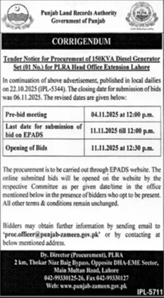 Mechanical, Machinery, Generators, General Order Supply, Energy, Electronics, Electrical, Corrigendum/Addendum