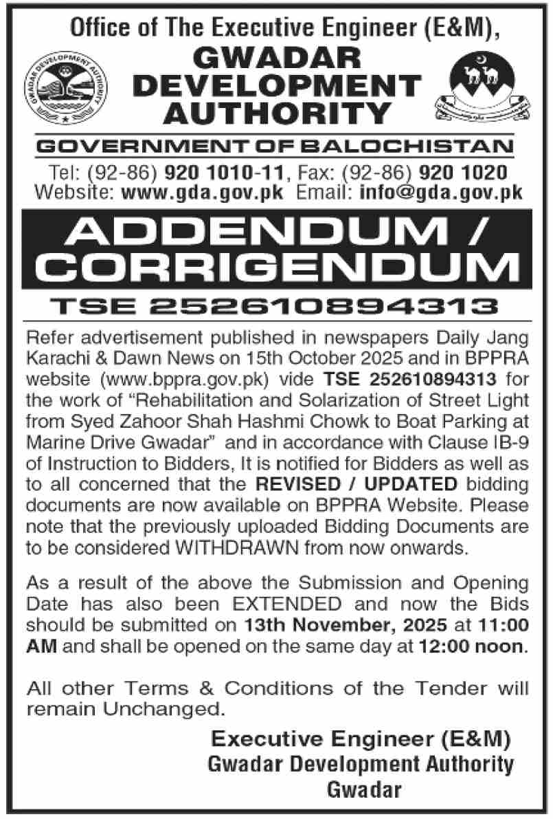 Water Supply Scheme / Drains / Sewerage, Roads, Repair & Maintenance, Light, Engineering, Energy, Corrigendum/Addendum , Construction, Buildings