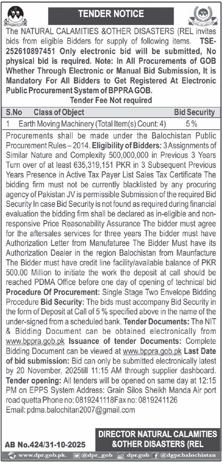 Mechanical, Machinery, General Order Supply, Electronics, Electrical, Earth Moving Machinery