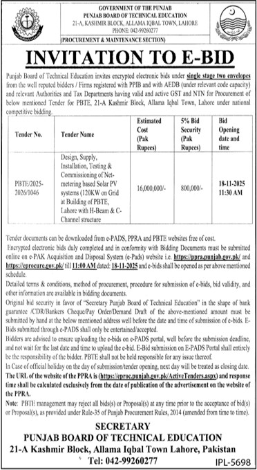 Punjab Board of Technical Education, Lahore
