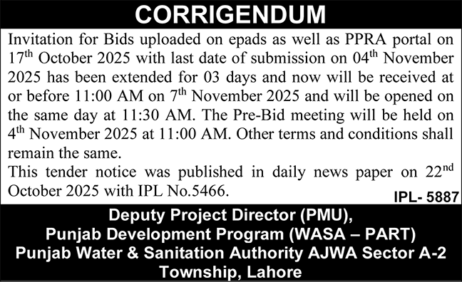 Water Supply Scheme / Drains / Sewerage, WASA, Roads, Repair & Maintenance, Engineering, Corrigendum/Addendum , Construction, Buildings