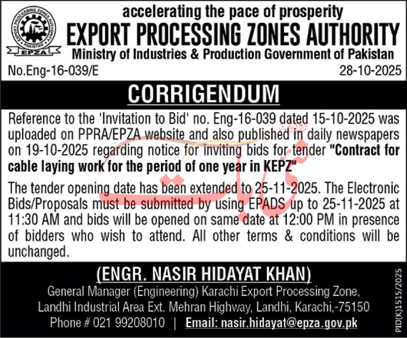 Mechanical, General Order Supply, Corrigendum/Addendum , Cables