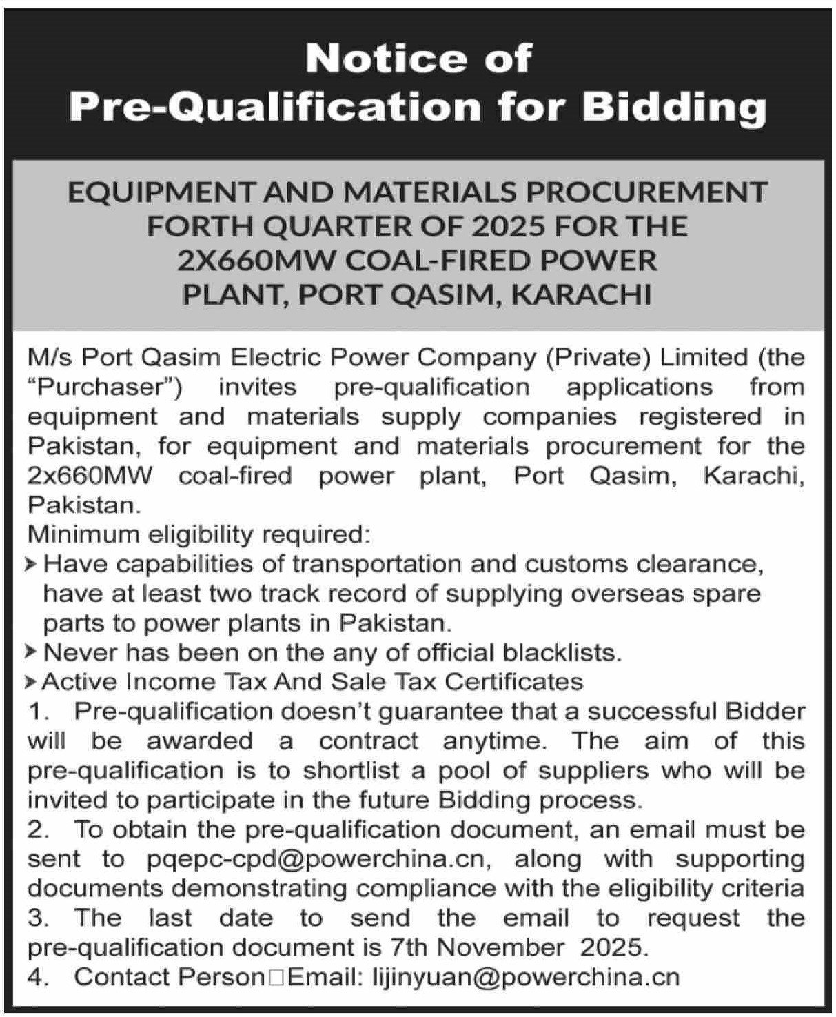 Pre Qualification, Mechanical, Machinery, General Order Supply, Energy, Electronics, Electrical