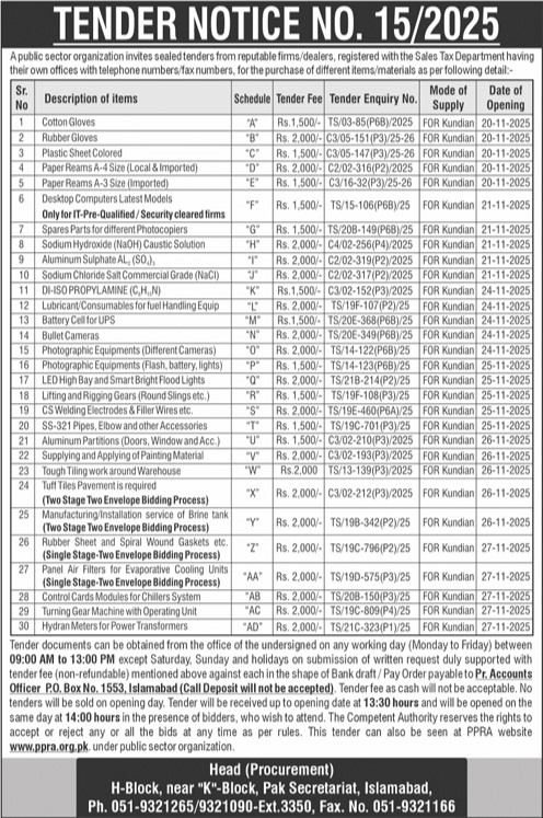 Tiles/Marbles, Textile/Uniform/Shoes, Stationery, Software, Repair & Maintenance, Networking, Mechanical, Machinery, Light, IT, General Order Supply, Engineering, Electronics, Electrical, Construction, Computers/Accessories, Chemicals, Cables