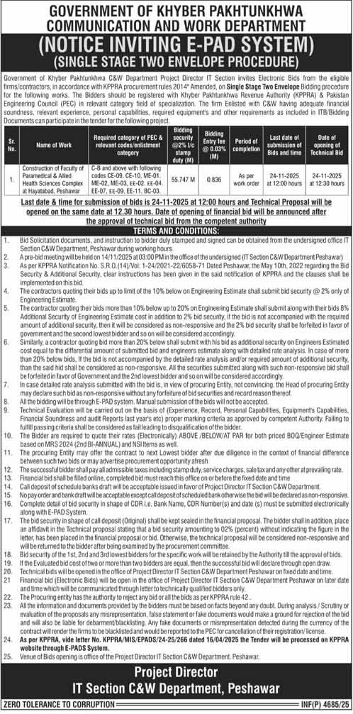Water Supply Scheme / Drains / Sewerage, Roads, Repair & Maintenance, Engineering, Construction, Communication & Works, Buildings