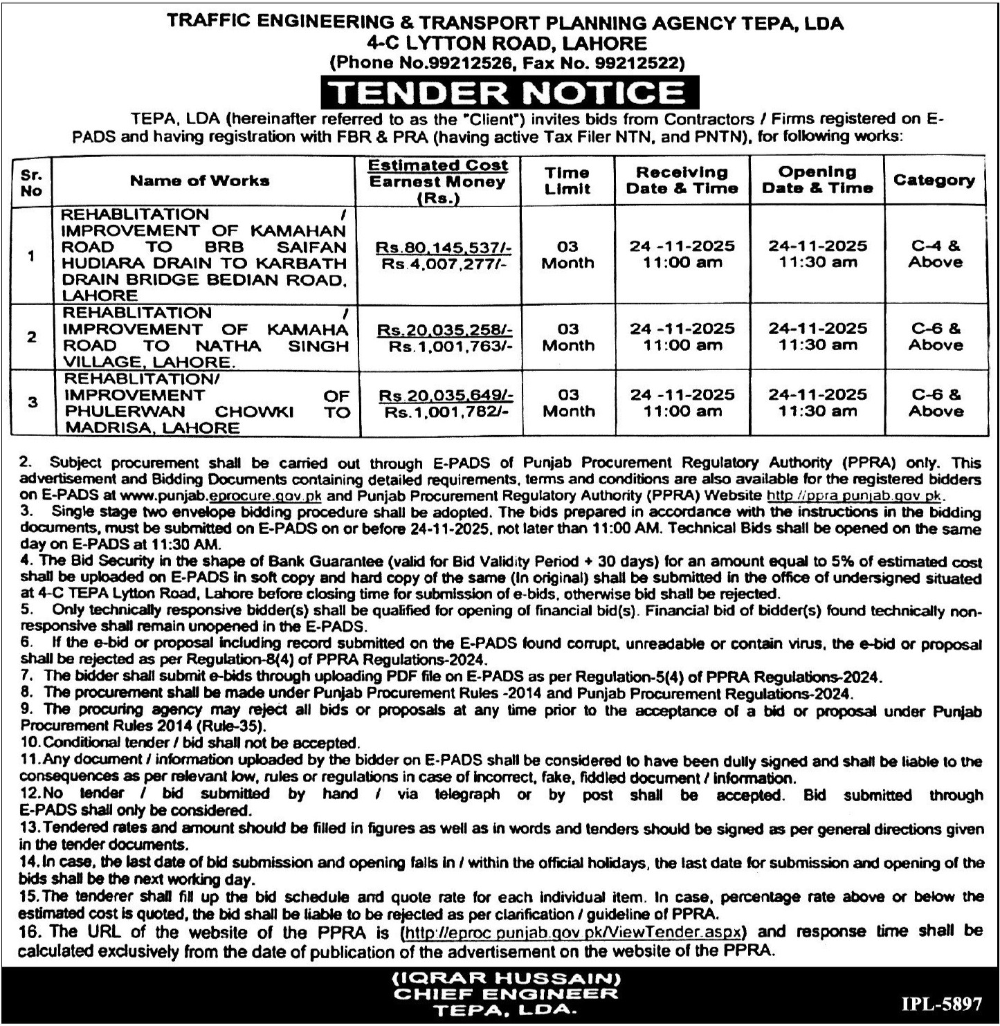 Water Supply Scheme / Drains / Sewerage, Roads, Repair & Maintenance, LDA, Engineering, Development Authority, Construction, Buildings