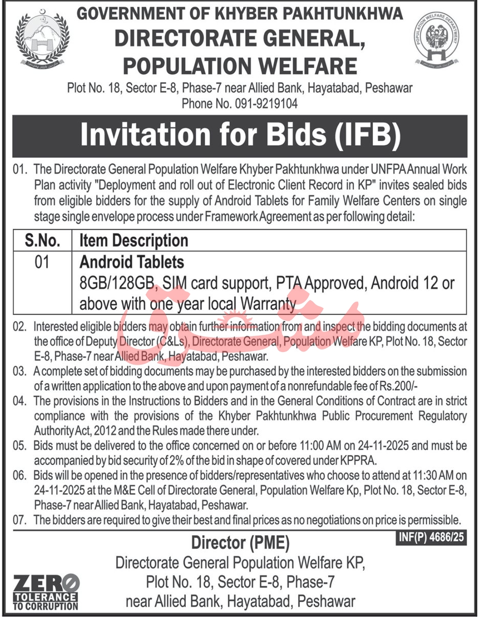 Population Welfare Department Peshawar |
