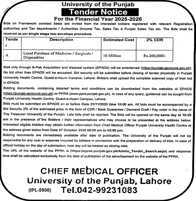 University of the Punjab, Lahore
