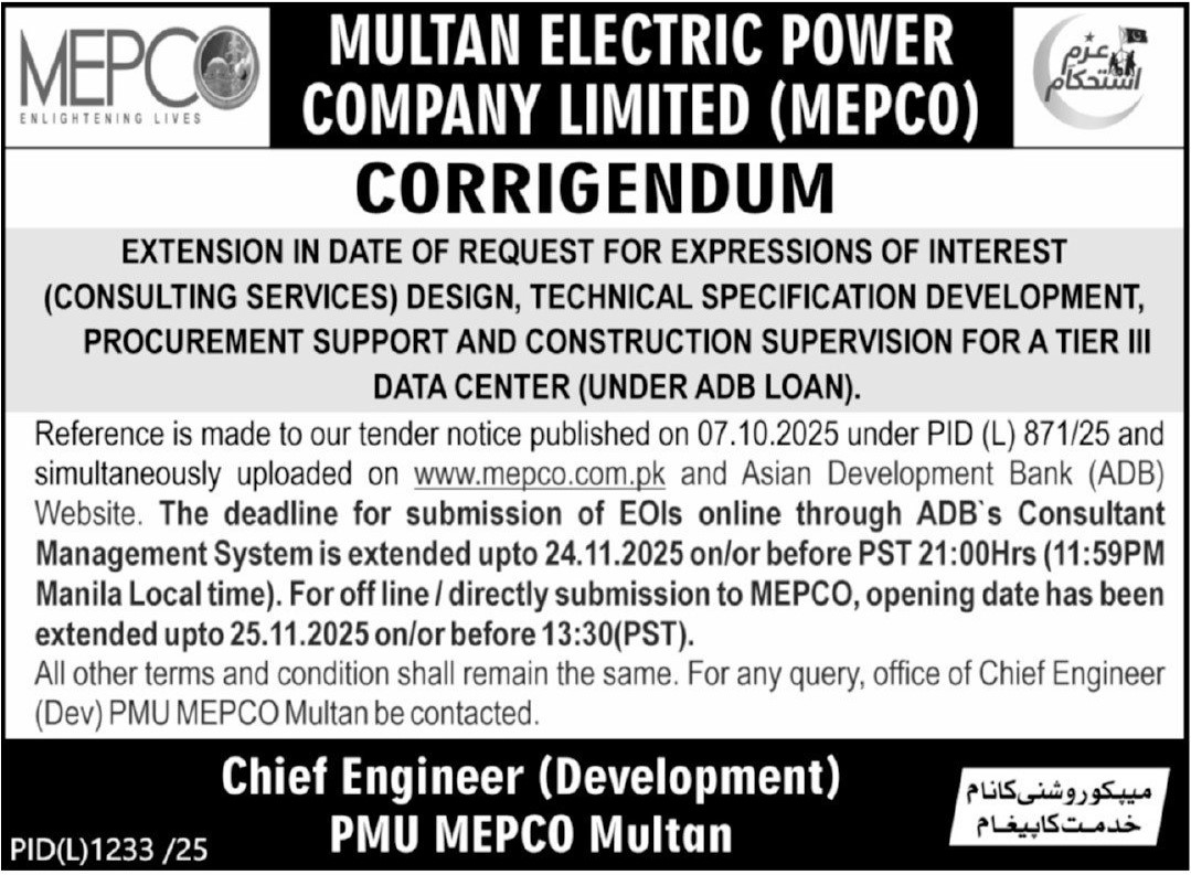 WAPDA, Services Required, Corrigendum/Addendum , Consultancy