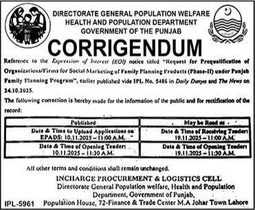 Services Required, Pre Qualification, Corrigendum/Addendum , Advertising