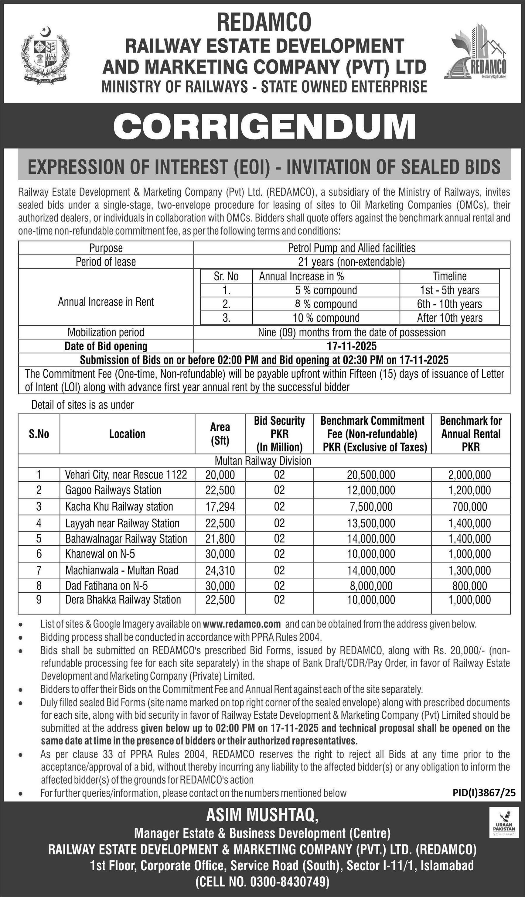 Services Required, Railway, Corrigendum/Addendum , Consultancy