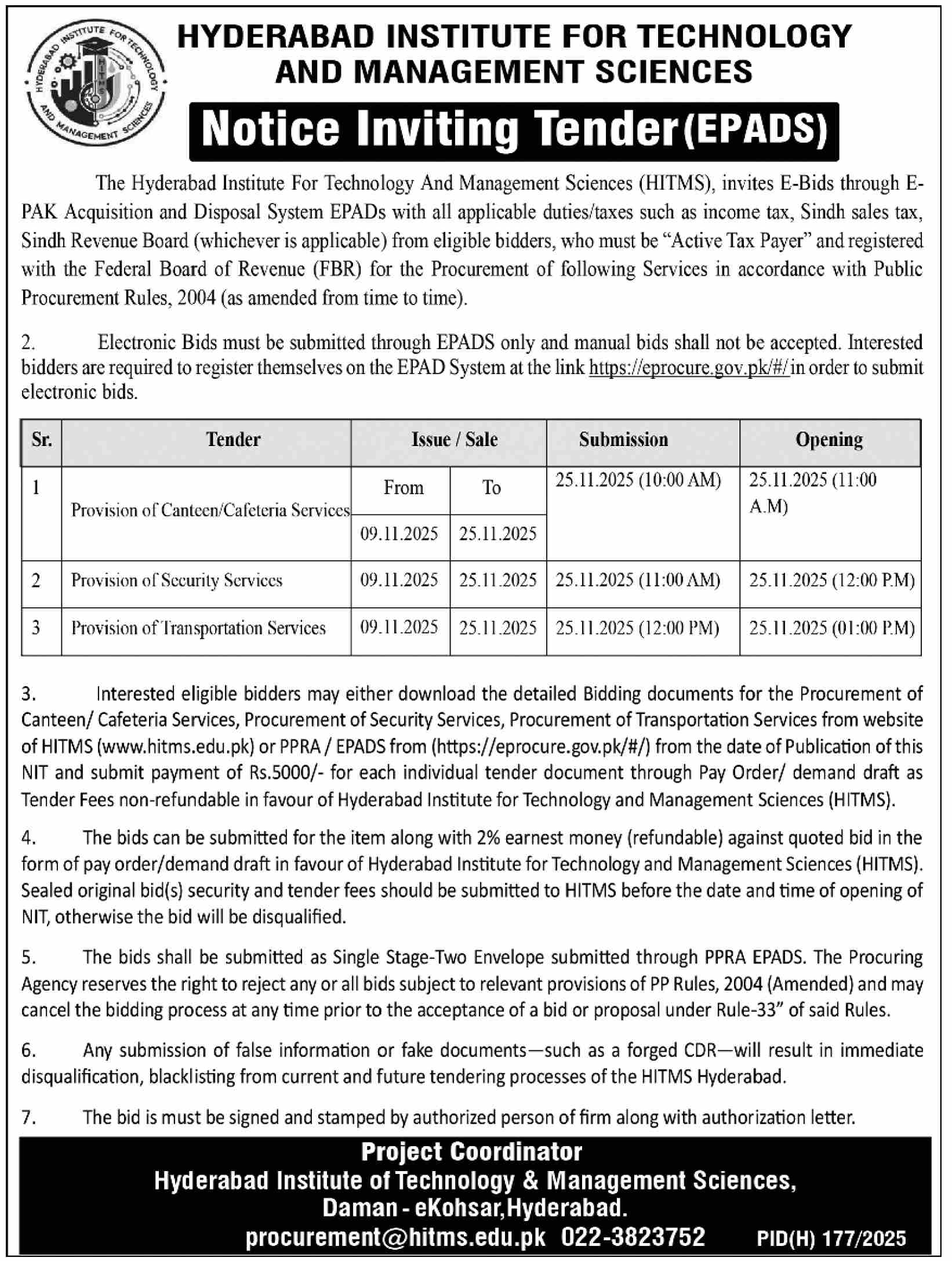 Transportation, Toll Tax, Services Required, Security, Baldia, Auction