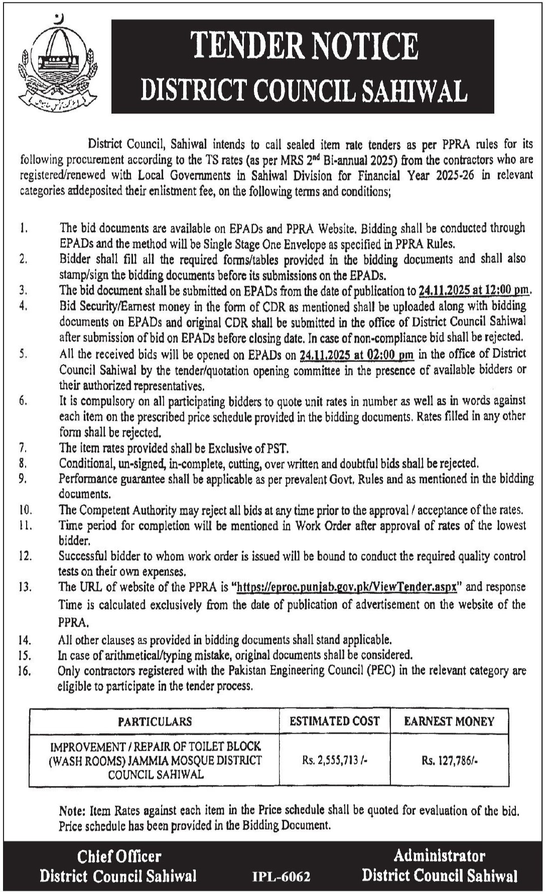 Water Supply Scheme / Drains / Sewerage, Roads, Repair & Maintenance, Engineering, Construction, Buildings