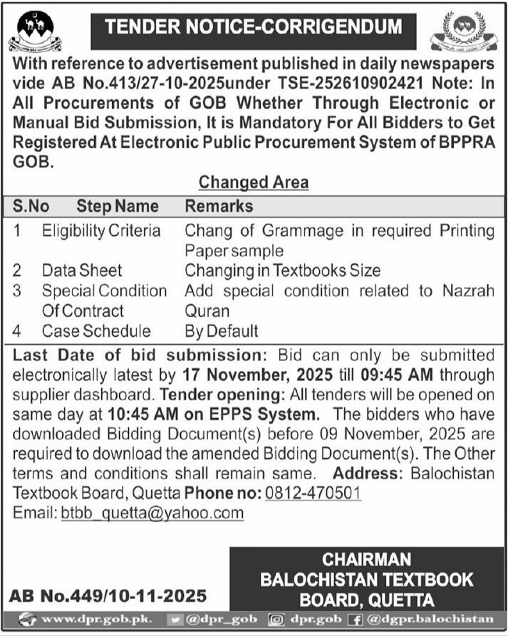 Roads, Repair & Maintenance, Mechanical, Machinery, General Order Supply, Engineering, Electronics, Electrical, Corrigendum/Addendum , Construction, Buildings