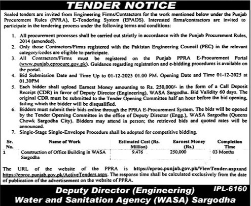 Water Supply Scheme / Drains / Sewerage, WASA, Roads, Repair & Maintenance, Engineering, Construction, Buildings