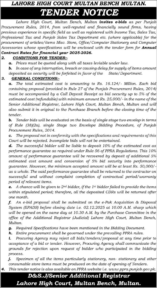 Tender Description