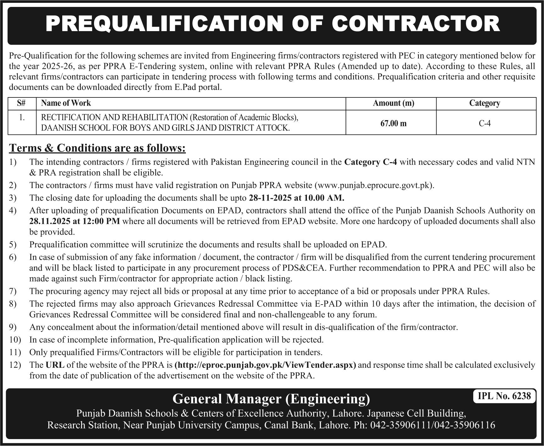 Water Supply Scheme / Drains / Sewerage, Roads, Repair & Maintenance, Pre Qualification, Engineering, Construction, Buildings
