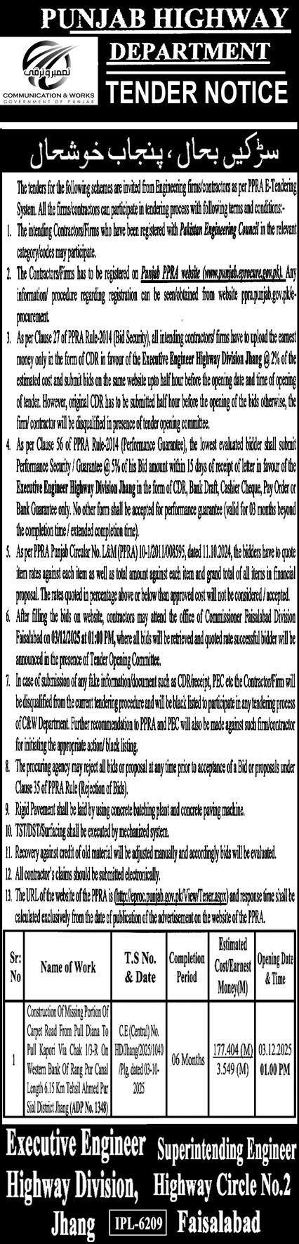 Superintending Engineer Provisional Highway Circle, Faisalabad