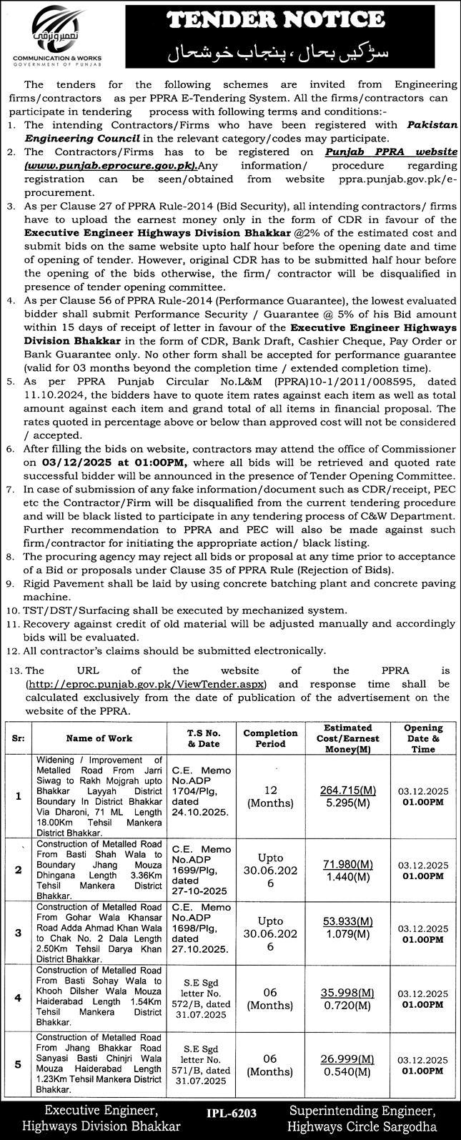 Executive Engineer Provincial Highway Division No 1, Sargodha