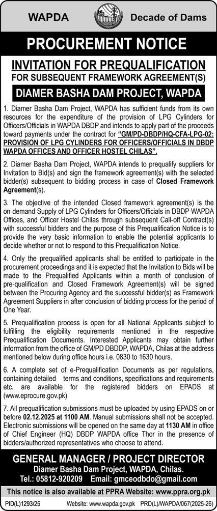Water, WAPDA, Pre Qualification, Oil & Lubricant, Mechanical, Machinery, General Order Supply, Electronics, Electrical, Chemicals, Automobiles/Vehicles, Auto Parts