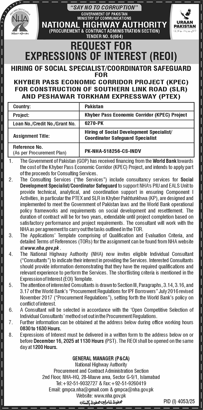 Services Required, NHA, Highways, Consultancy