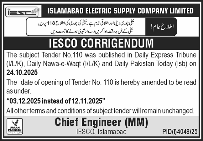 WAPDA, Roads, Repair & Maintenance, Mechanical, Machinery, General Order Supply, Engineering, Electronics, Electrical, Corrigendum/Addendum , Construction, Buildings