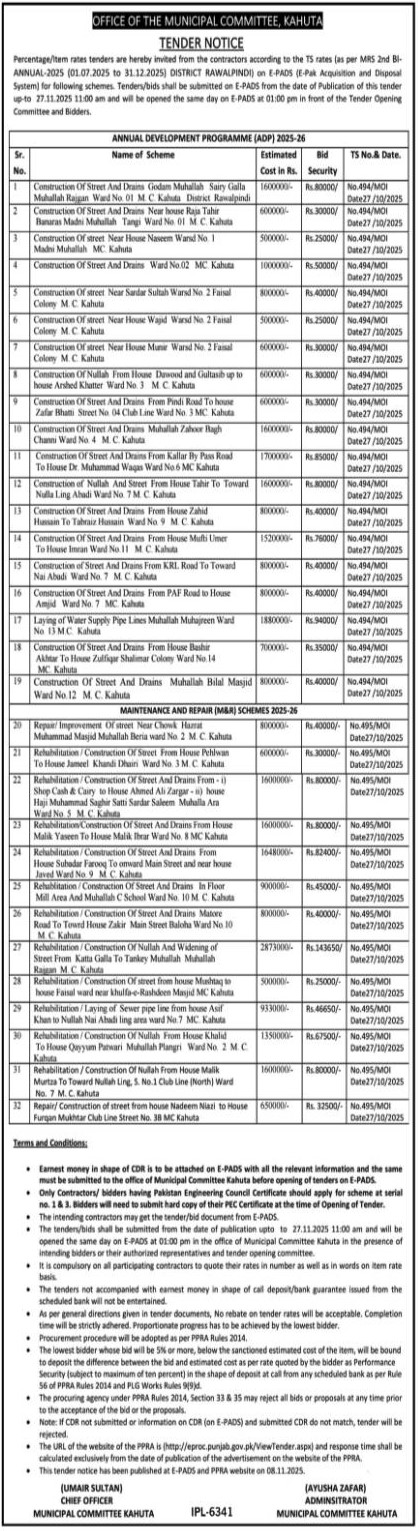 Water Supply Scheme / Drains / Sewerage, Roads, Repair & Maintenance, Engineering, Construction, Buildings