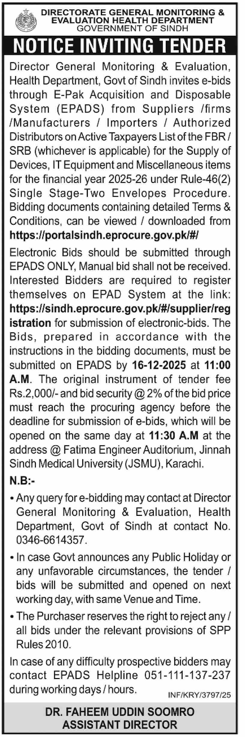 Tender Description
