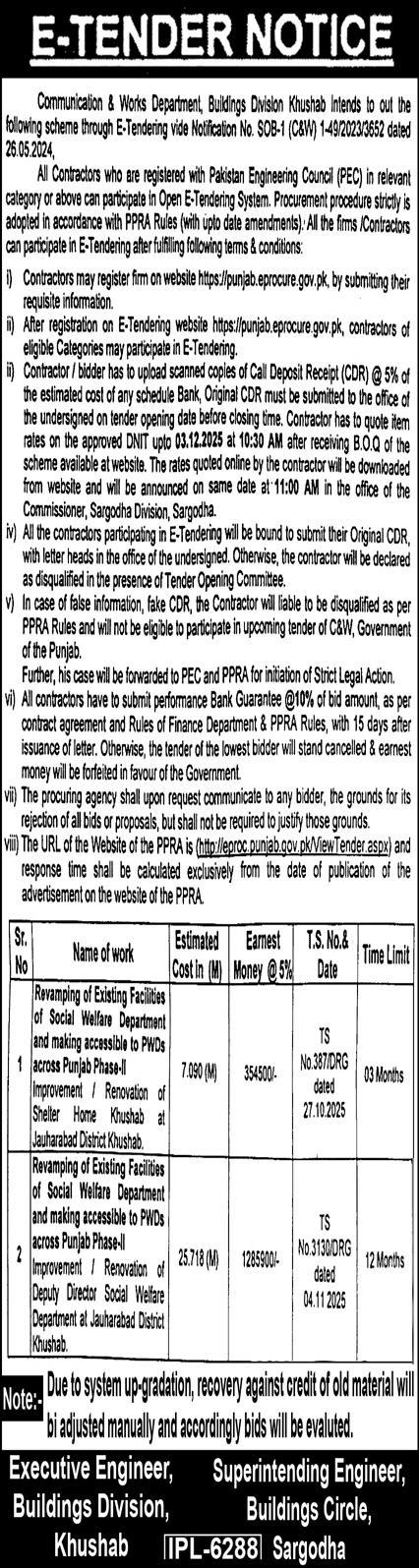 Water Supply Scheme / Drains / Sewerage, Roads, Repair & Maintenance, Engineering, Construction, Buildings