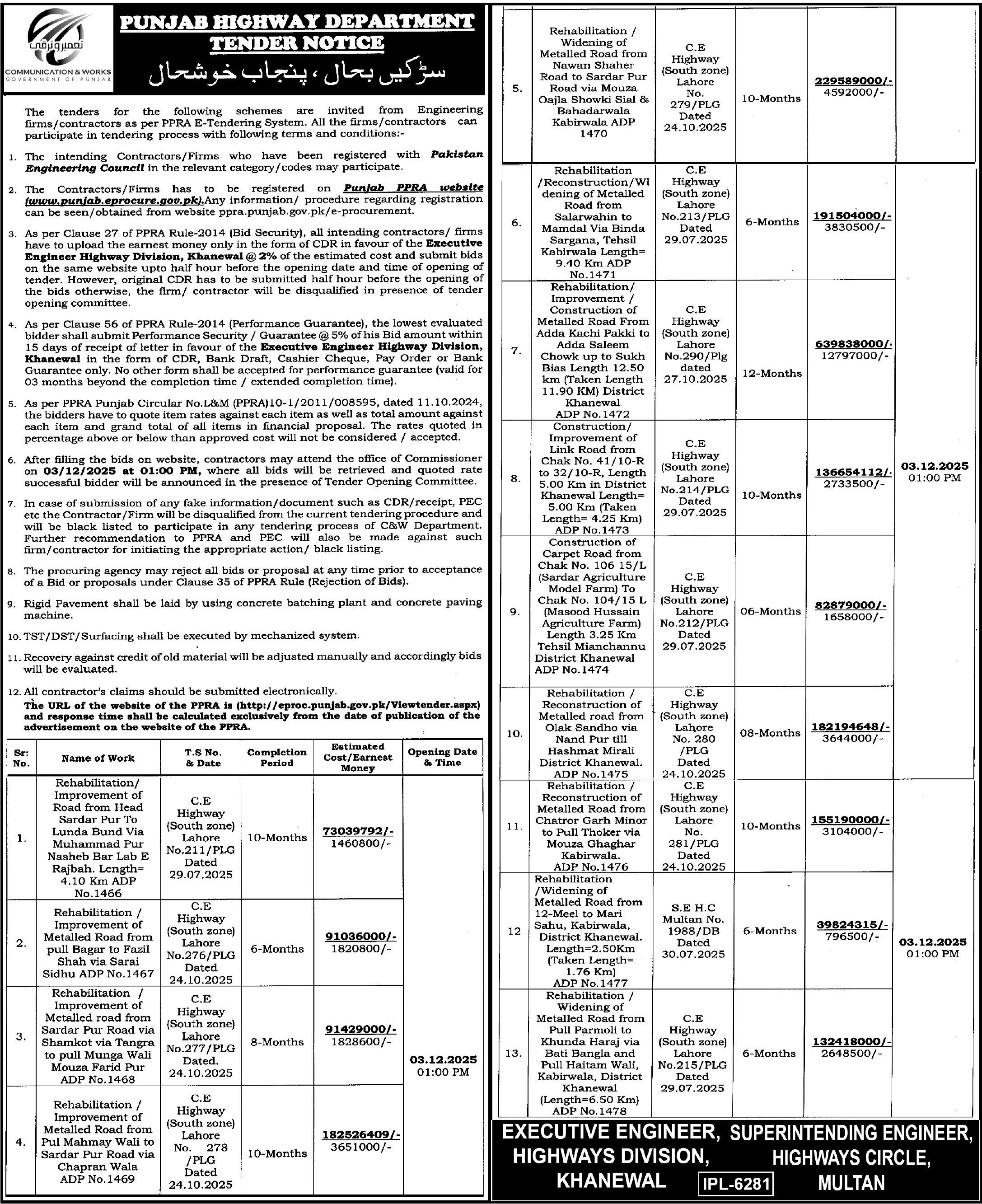 Water Supply Scheme / Drains / Sewerage, Roads, Repair & Maintenance, Highways, Engineering, Construction, Buildings