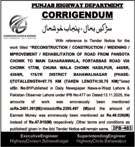 Water Supply Scheme / Drains / Sewerage, Roads, Repair & Maintenance, Highways, Engineering, Corrigendum/Addendum , Construction, Buildings
