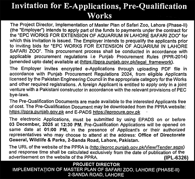 Roads, Repair & Maintenance, Pre Qualification, Mechanical, Machinery, General Order Supply, Engineering, Electronics, Electrical, Construction, Buildings