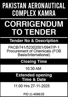General Order Supply, Corrigendum/Addendum , Chemicals