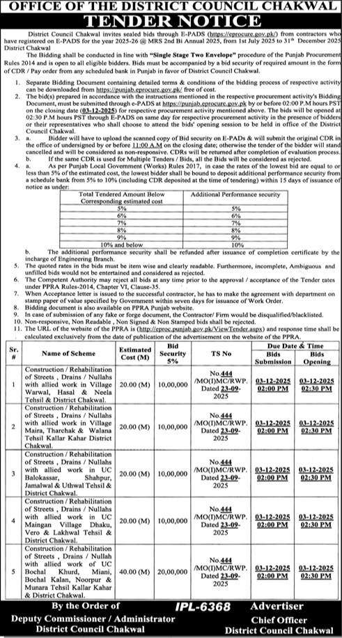 Water Supply Scheme / Drains / Sewerage, Roads, Repair & Maintenance, Engineering, Construction, Buildings