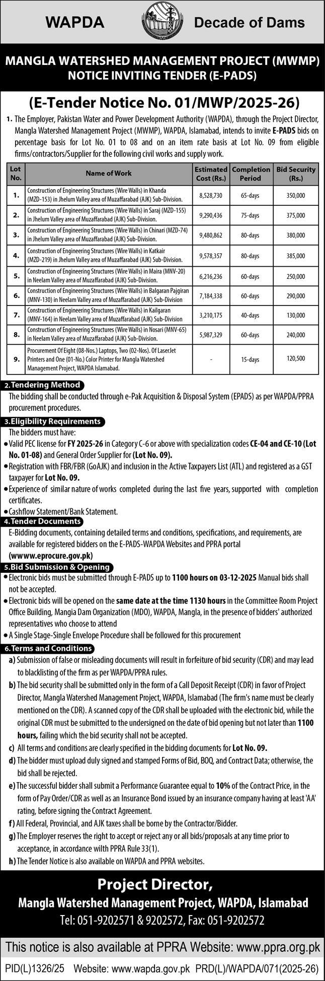 WAPDA, Telecommunications, Stationery, Software, Roads, Repair & Maintenance, Networking, Mechanical, Machinery, IT, General Order Supply, Engineering, Electronics, Electrical, Construction, Computers/Accessories, Cables, Buildings