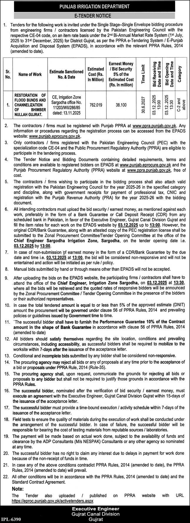 Executive Engineer, Gujrat Division, UJC, Gujrat