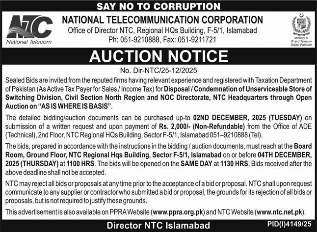 Toll Tax, Scrap Material, Baldia, Auction