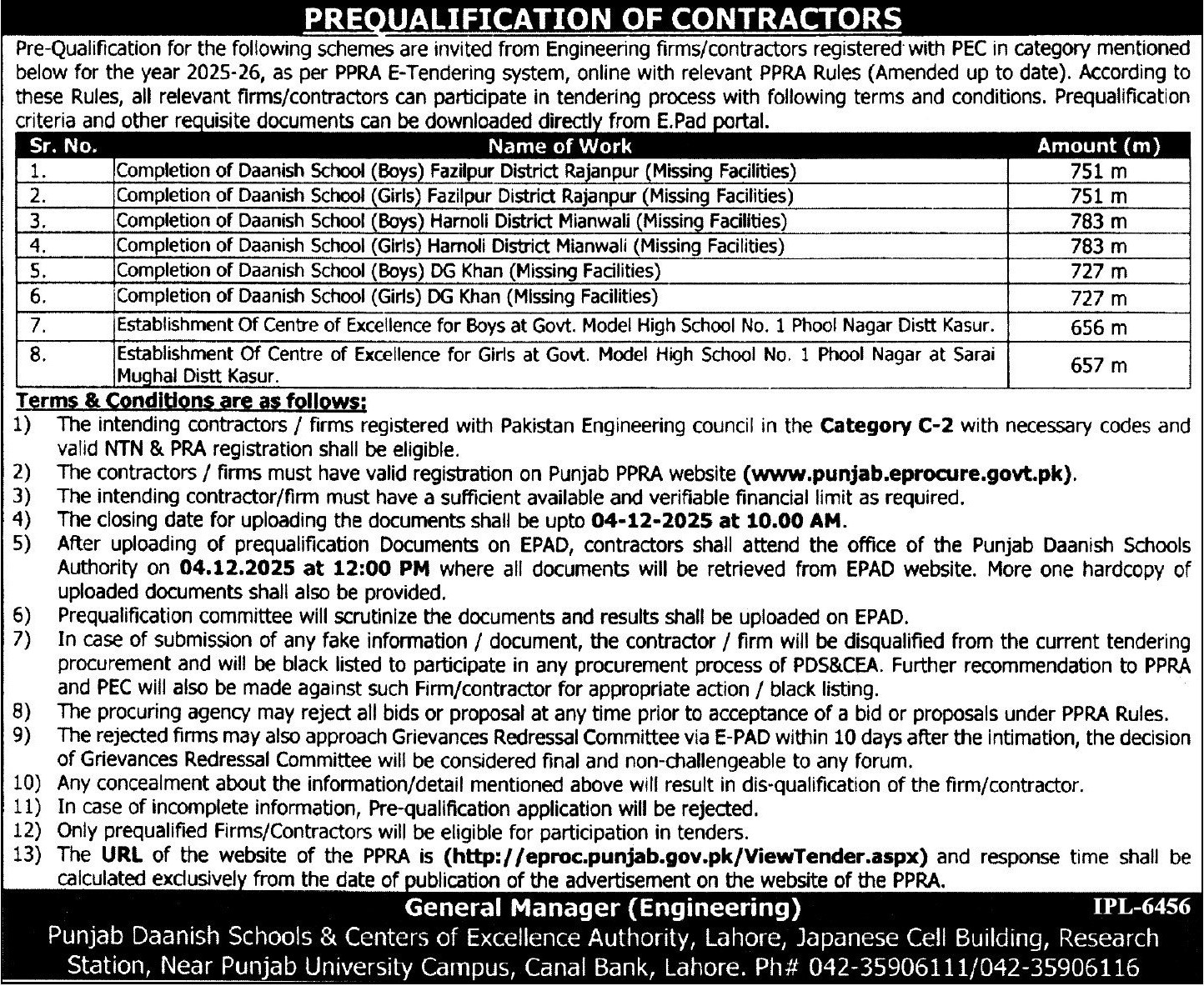 Water Supply Scheme / Drains / Sewerage, Roads, Repair & Maintenance, Pre Qualification, Engineering, Construction, Buildings