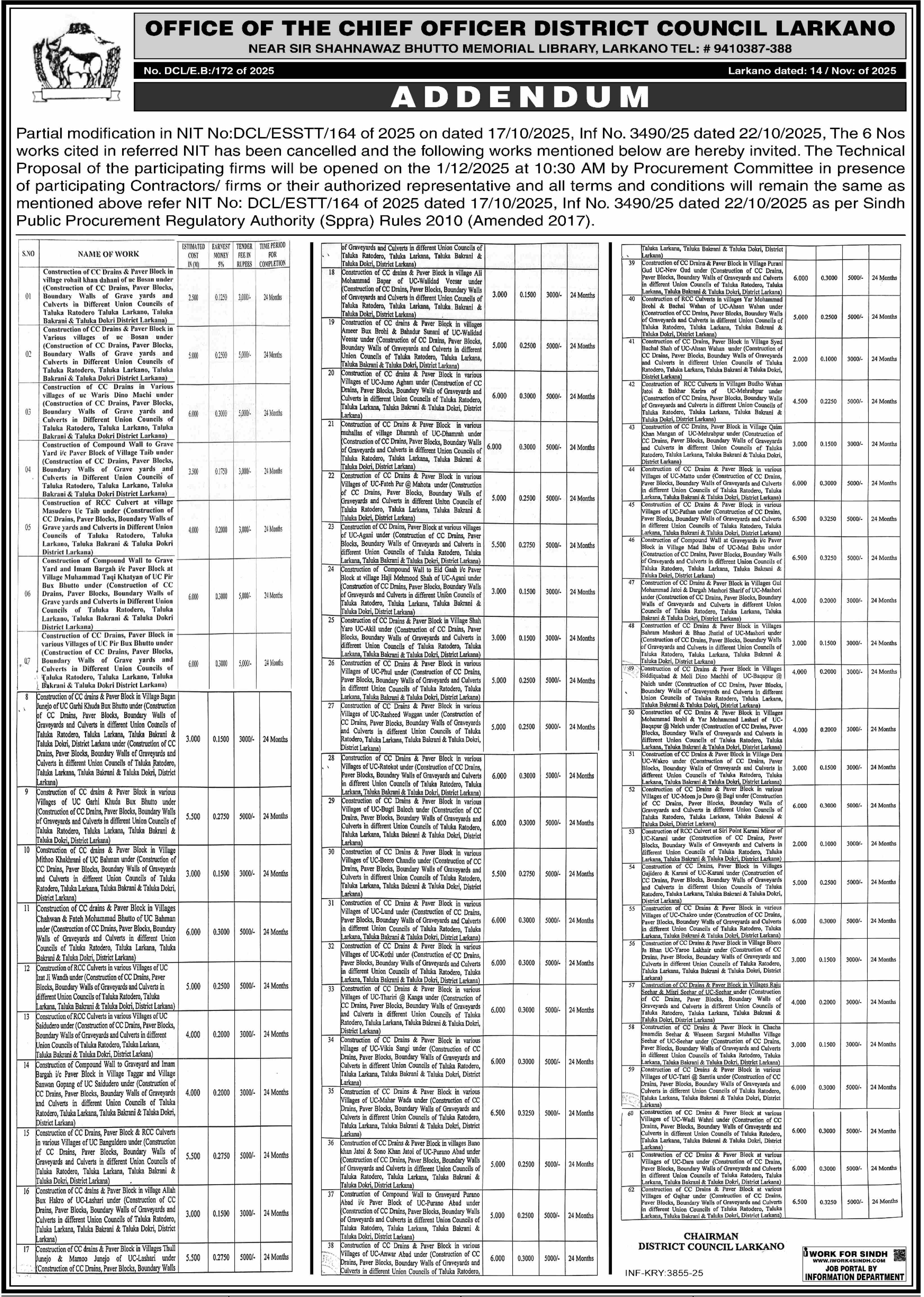 Water Supply Scheme / Drains / Sewerage, Tiles/Marbles, Streets / Soling, Roads, Repair & Maintenance, Engineering, Corrigendum/Addendum , Construction, Buildings, Baldia