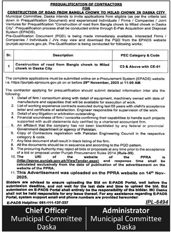 Roads, Repair & Maintenance, Pre Qualification, Engineering, Construction, Buildings, Baldia