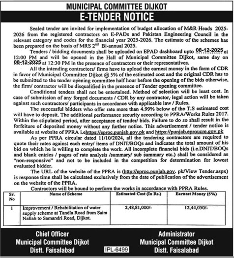 Water Supply Scheme / Drains / Sewerage, Roads, Repair & Maintenance, Engineering, Construction, Buildings, Baldia
