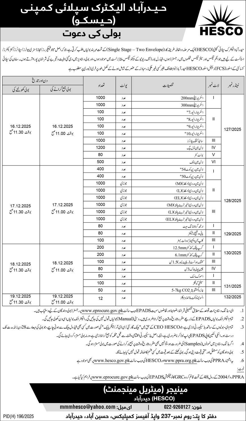 WAPDA, Textile/Uniform/Shoes, Mechanical, Machinery, General Order Supply, Electronics, Electrical, Bags