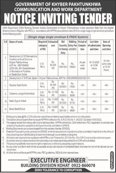 Water Supply Scheme / Drains / Sewerage, Roads, Repair & Maintenance, Engineering, Construction, Communication & Works, Buildings