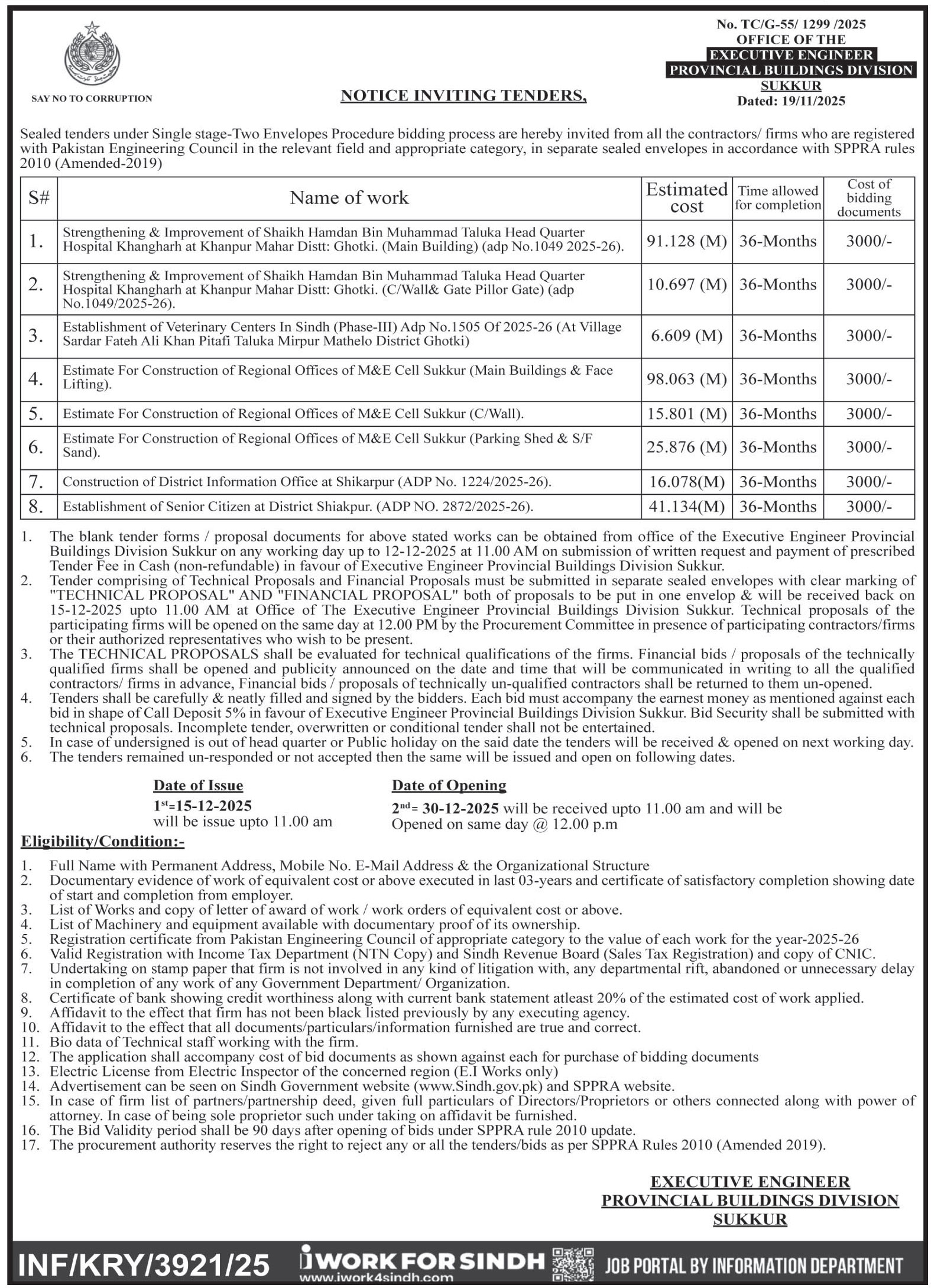 Water Supply Scheme / Drains / Sewerage, Roads, Repair & Maintenance, Engineering, Construction, Buildings