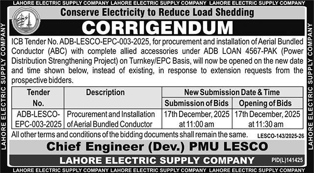 WAPDA, Mechanical, Machinery, General Order Supply, Electronics, Electrical, Corrigendum/Addendum