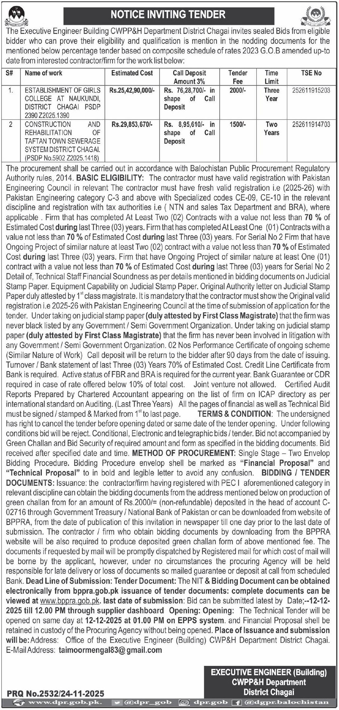 Water Supply Scheme / Drains / Sewerage, Roads, Repair & Maintenance, Engineering, Construction, Buildings