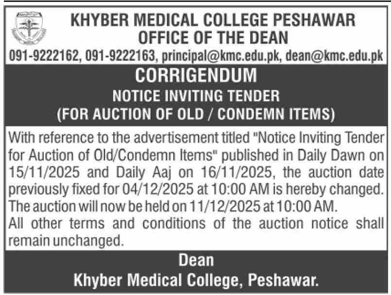 Toll Tax, Scrap Material, Education, Corrigendum/Addendum , Baldia, Auction
