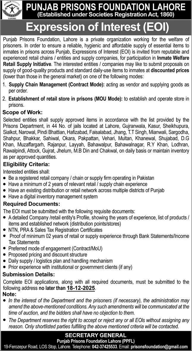 Punjab Prison Foundation, Lahore